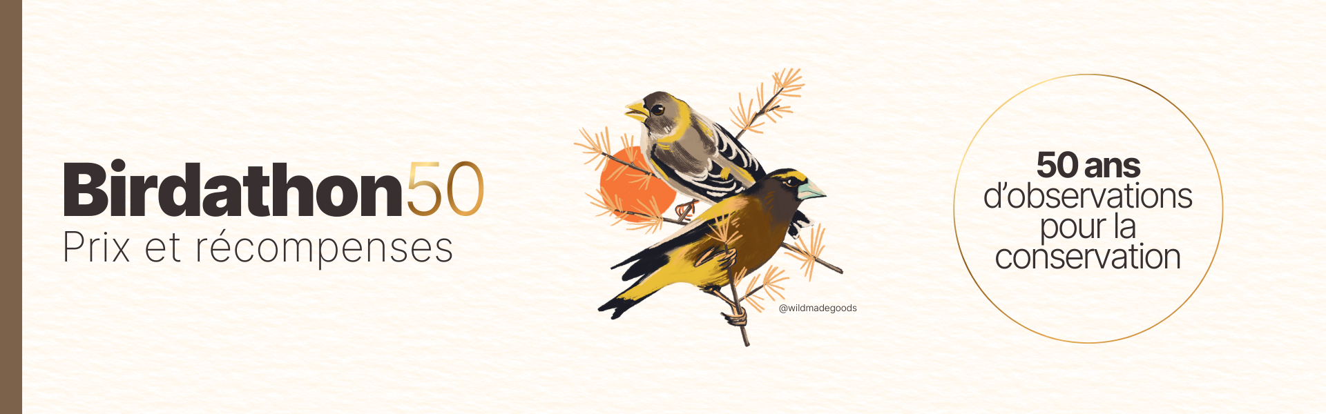 En tant qu’éclaireur, vous observez ce dont les oiseaux ont besoin pour s’épanouir et vous montrez l’exemple. Recevez en exclusivité une reproduction artistique au format 5 x 7 (sans cadre) représentant un couple de Gros-becs errants, notre ambassadeur aviaire 2026. Une œuvre de Kristen Lebel, de Wild Made Goods. Imprimée sur du papier certifié FSC.
