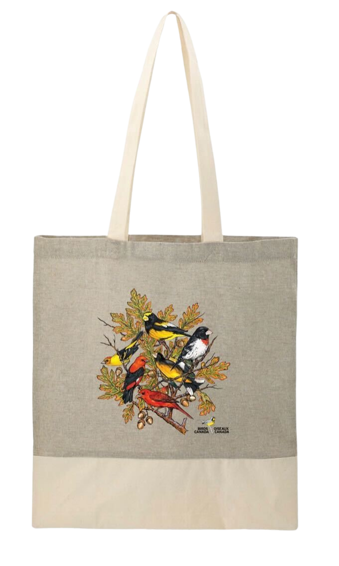 En tant que navigateur, vous guidez les autres et donnez l’élan nécessaire à un parcours épique. Vous recevrez la récompense du niveau Éclaireur, ainsi qu’un sac fourre-tout écologique orné d’un motif rétro inspiré du Birdathon 1995 (gros-becs et pirangas). Vous participerez également au tirage au sort du grand prix: une aventure ornitho inoubliable avec Eagle-Eye Tours!