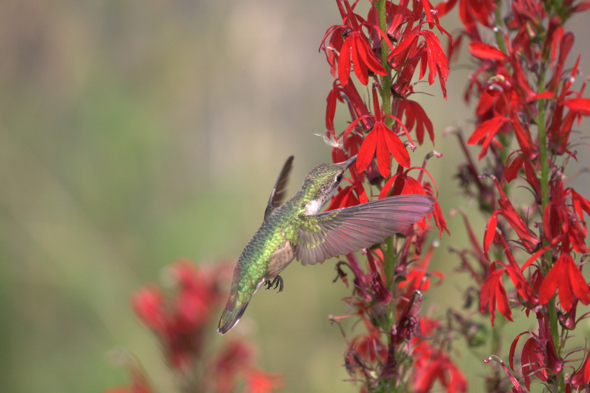 Un colibri à gorge rubis occupé à butiner. Photo: Grant Davis