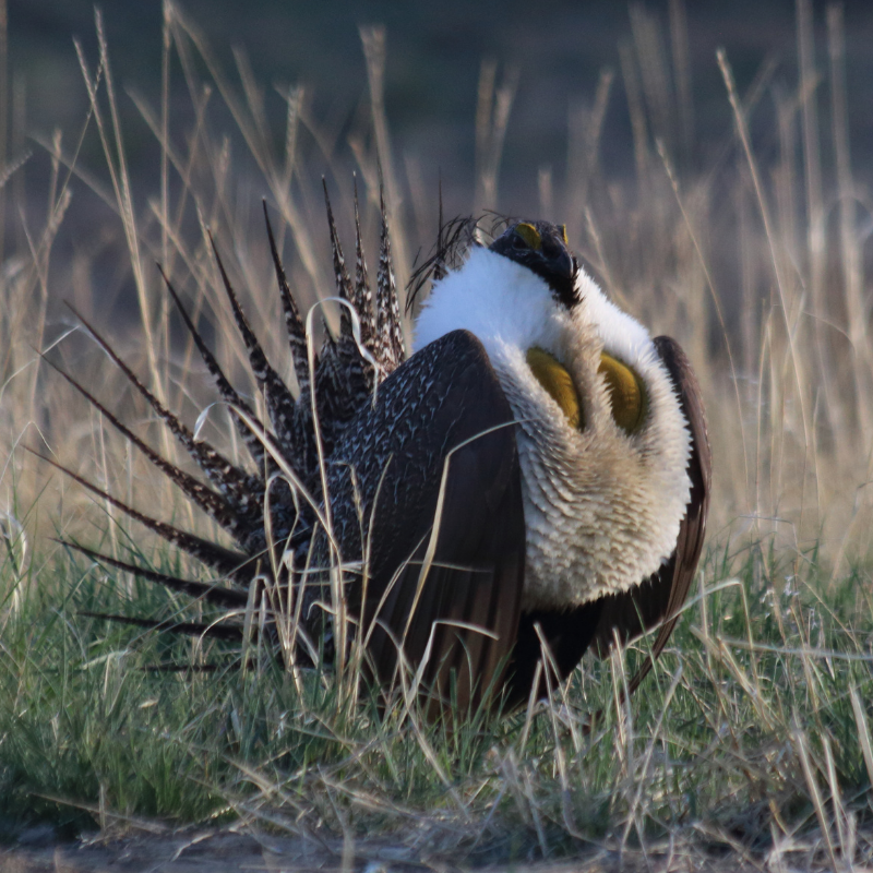 Cet habitant spectaculaire mais souvent discret des Grandes Plaines et du Grand Bassin est désormais classé «vulnérable» à l’échelle mondiale, en raison d’un déclin rapide et continu depuis longtemps de sa population et d’une contraction de son aire de répartition, son habitat de buissons d’armoise étant perdu et dégradé. Les principaux facteurs responsables sont l’agriculture et le développement, mais la fréquence et l’intensité croissantes des incendies y contribuent également, facilitant l’envahissement par des conifères et des graminées. Au Canada, l’espèce est classée «en voie de disparition», mais les nouvelles désignations de zones clés pour la biodiversité (page en anglais) et les efforts de rétablissement à long terme autorisent un optimisme prudent.