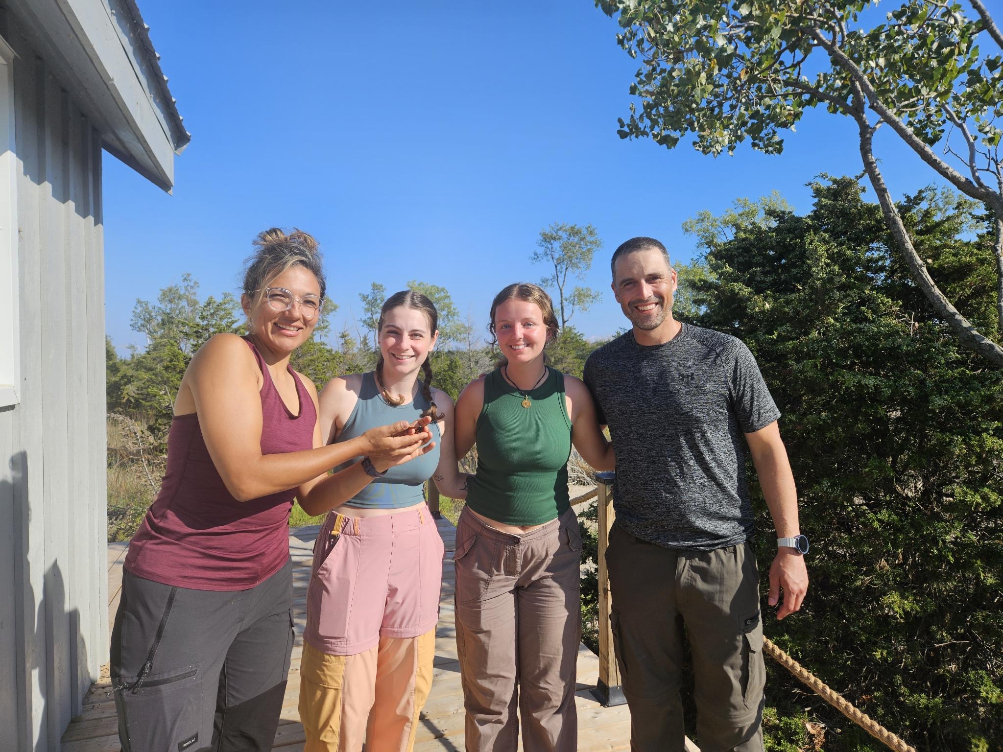 Ana Diaz, Marianne Goulet, Lily Charles et le Dr Gregory Mitchell, membres du personnel d’ECCC, avec des étudiants de l’Université de Guelph et d’Ottawa au Tip de Long Point. Photo : Samuel Perfect.